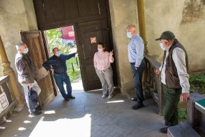Die versammelte Kommission staunte am 12. Mai 2021 nicht schlecht, als zum vereinbaren Ortstermin an der evangelischen Kirche von Großlasseln bereits zwei unangemeldete Gäste überpünktlich erschienen waren. Ein Storchenpaar hatte sich – reichlich spät – kurz vor der geplanten Baustelleneröffnung in dem Nest am Giebel der Kirche niedergelassen und wunderte sich sichtlich über die erschienenen Besucher. Bezirksdechant Stpfr. Dr. Bruno Fröhlich, Kurator Michael Homm, Pfarrer Johannes Halmen, Ecaterina Gál und Sebastian Bethge (Stiftung Kirchenburgen), Architekt Tudor Pavelescu und der beauftragte Bauunternehmer Cristian Buhazi waren sich rasch darüber einig, dass man die Präsenz der gefiederten Gesellen nicht einfach ignorieren kann.